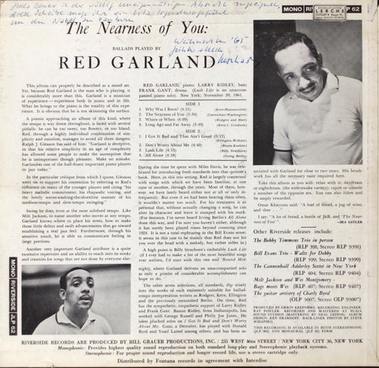 Red Garland - The Nearness Of You (LP,Album,Mono) (Very Good (VG))