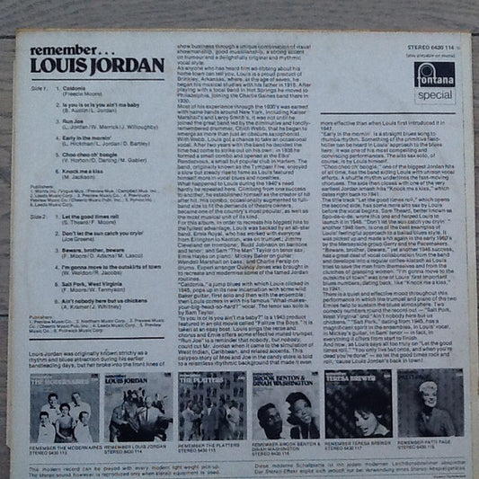 Louis Jordan - Remember... Louis Jordan (LP,Album,Reissue,Stereo) (Very Good Plus (VG+))