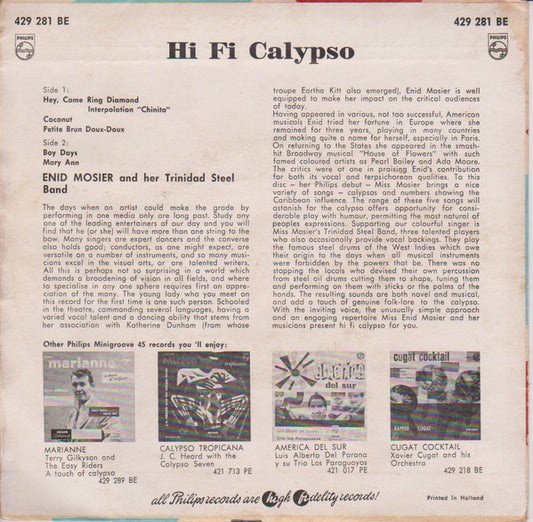 Enid Mosier And Her Trinidad Steel Band - Hi Fi Calypso (7",EP) (Very Good Plus (VG+))