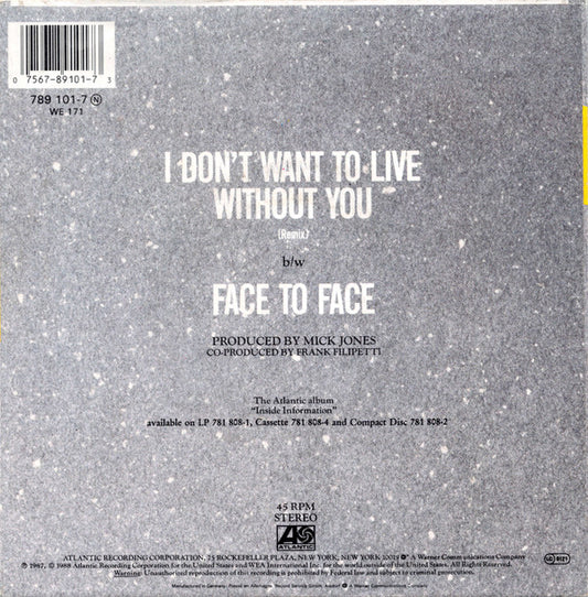 Foreigner - I Don't Want To Live Without You (7",45 RPM,Single) (Very Good Plus (VG+))