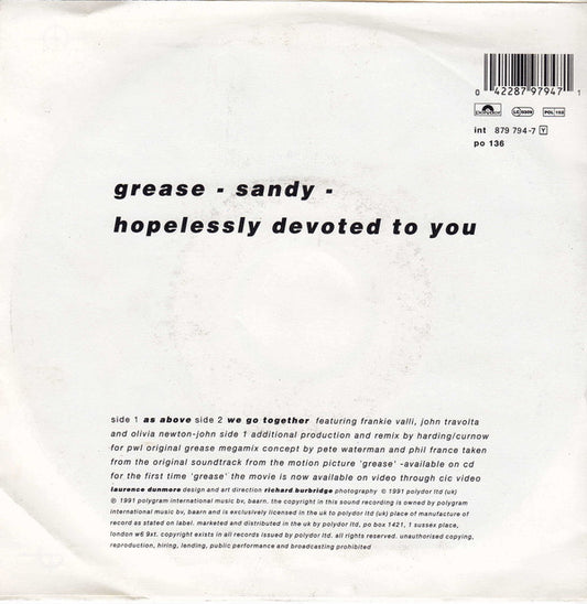 Frankie Valli, John Travolta And Olivia Newton-John - Grease - The Dream Mix (7",45 RPM,Single) (Very Good Plus (VG+))