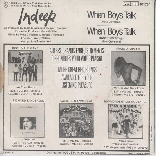 Indeep - When Boys Talk (7",45 RPM,Single) (Very Good Plus (VG+))
