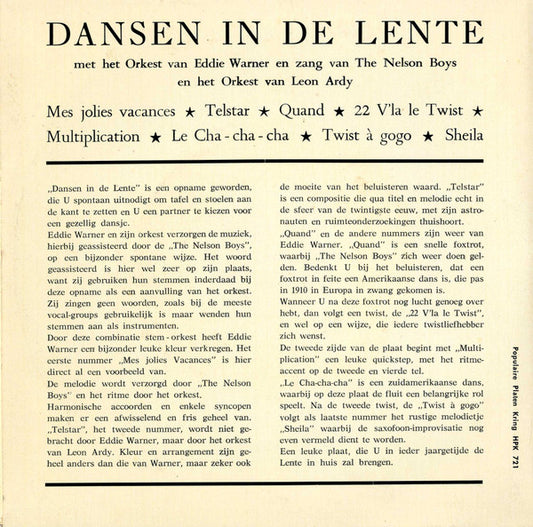 L'Orchestre D'Eddie Warner, Nelson Boys, The, Orchester Leon Ardy - Dansen In De Lente (7",EP,33 ⅓ RPM) (Near Mint (NM or M-))