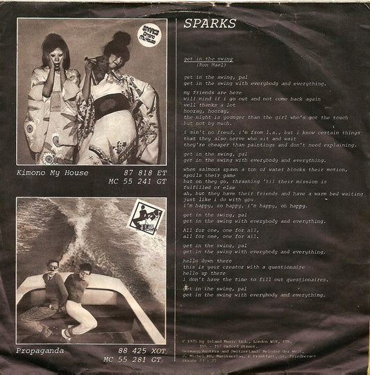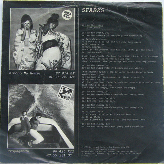 Sparks - Get In The Swing (7",45 RPM,Single) (Very Good Plus (VG+))