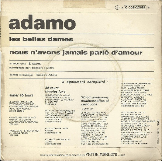 Adamo - Les Belles Dames / Nous N'Avons Jamais Parlé D'Amour (7", Single) (Very Good Plus (VG+))